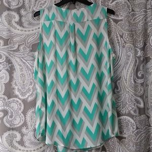 Adorable white, turquoise/mint, and gray tank with gold zipper. Great for business or casual. 100% polyester.