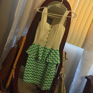 Size small Like new, worn once! Adorable little chevron sight peplum turquoise and white dress from a cute little boutique. Has a little stretch to it.