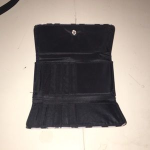 Small wallet, lots of pockets. In great condition except the zipper pull is missing (4th picture) but it still works.