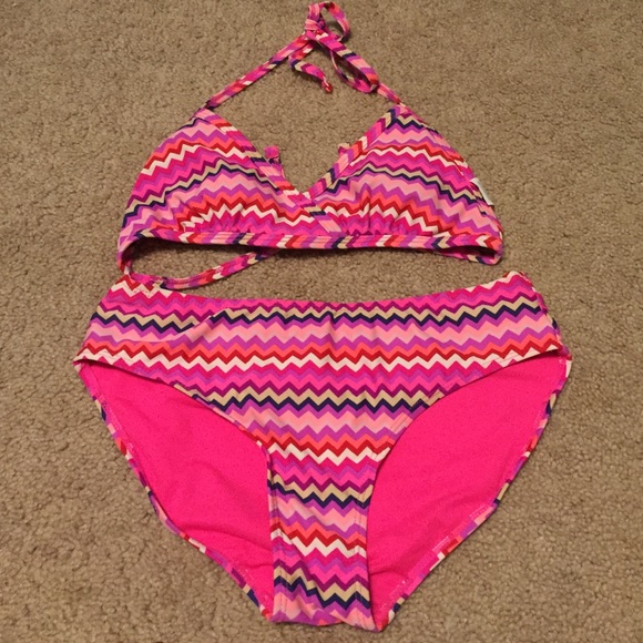 This bikini is so cute and basically brand new! Only worn once!! The colors are bright and haven't faded at all. Size YXL but can definitely fit sizes AXS/AS.
