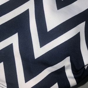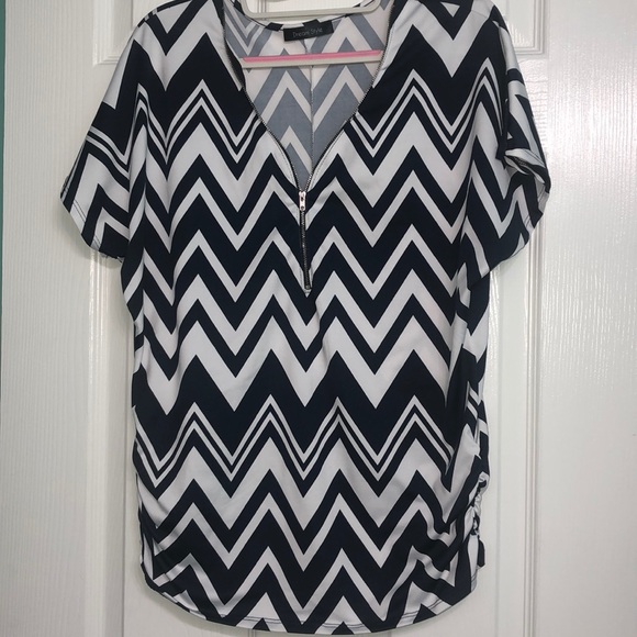 Short sleeve vneck with zipper the stripes look black but are a dark blue.