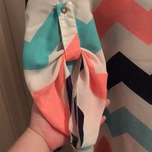 Chevron top with a cute keyhole at the neckline and 3/4 sleeves that can button or unbutton. Whichever is preferred