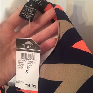 Chevron semi-sheer tunic top, neon coral, beige, and navy blue. NWT. Three-quarter sleeve.