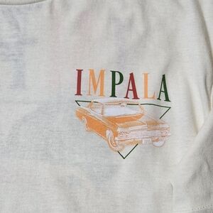 Chevy Impala T-shirt Mens Large Cream 1965 Chevrolet Graphic Car Enthusiast Tee