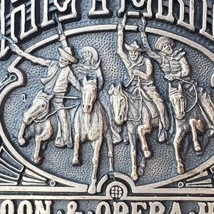 This fun brass belt buckle represents the Cheyenne Saloon & Opera House in Orlando Florida