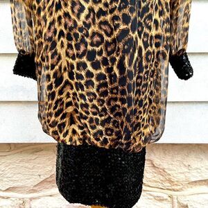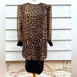 ***Chez California Vintage Tandy Cheetah Printed Dress Sequins Hem/Cuff (D)