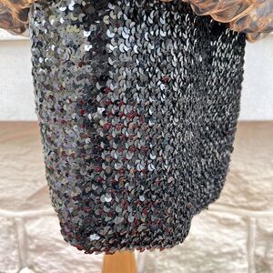 Beautiful dress! Great condition. Banded sequin cuffs and hem. Semi shear sleeve. Sewn in shoulder pads. Full back zip closure. Size 18W. Fully lined with a semi shear top layer. Statement piece for any event or party! Sexy yet elegant!