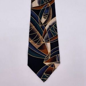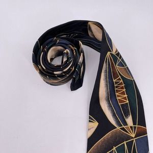 Chez Roffe Silk Necktie Tie Abstract Football Design 59" Gold Metallic Accent