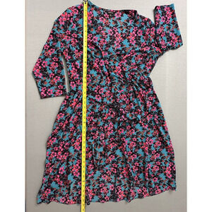 Cheztu Womens Dress 12 Turquoise Blue Pink Floral Faux Wrap Ruffle Cottagecore