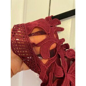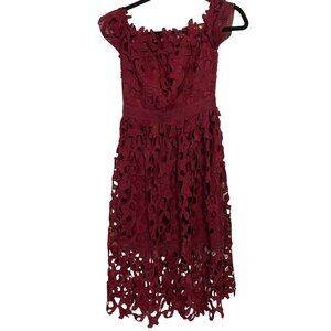 Chi Chi London Burgundy Lace Floral Midi Dress Off Shoulder Design Womens Size S