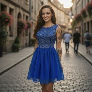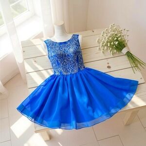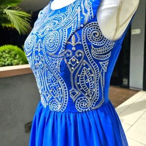 Chi Chi London ✦ Embroidered Party Dress ✦ Cobalt Blue w/ Silver Crystals Sheer