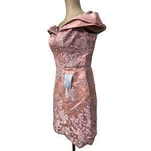 Chi Chi London NWT Jameela Off the Shoulder Embroidered Pink Satin Mini Dress 8