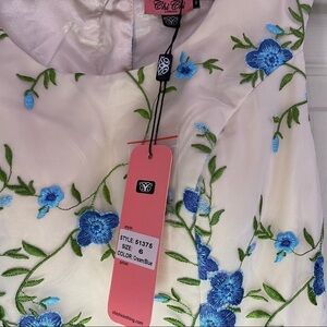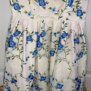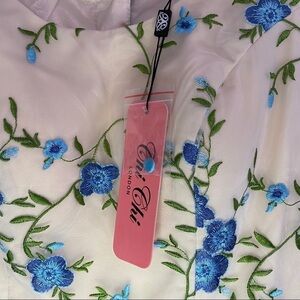 Chi Chi London, NWT, Romantic, Cream & Blue, Embroidered Floral, Lined, Tulle Skirt Lining, Spring Summer, Sleeveless Dress. Button Up back & zipper closure.