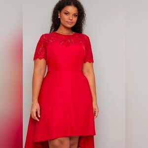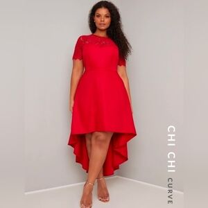 Chi Chi London Red Lace Bodice Dip High Lo Dress Size 8