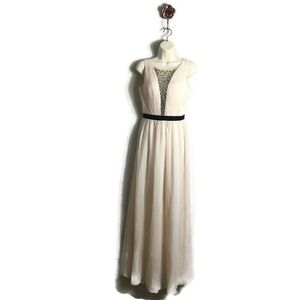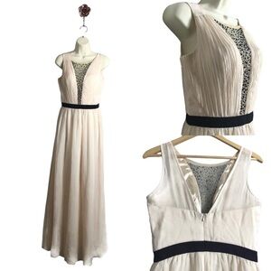 Chi Chi London Size 4 Cream Sequin Pleated Maxi Dress Event Formal Ethereal