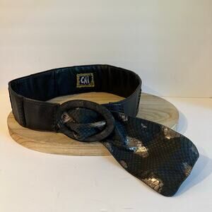 Chi Designed by Carlos Falchi Black Genuine Leather Snake Skin Belt Free Size