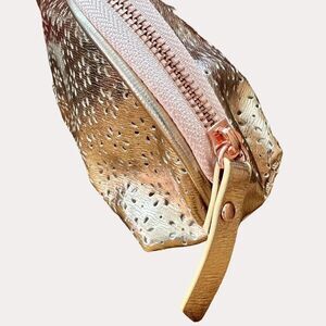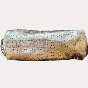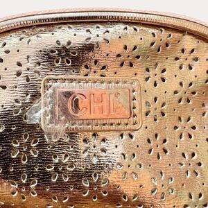 Chi Rose Gold Floral Cut Out Makeup Bag Accessory Pouch Satin Lined New NWOT