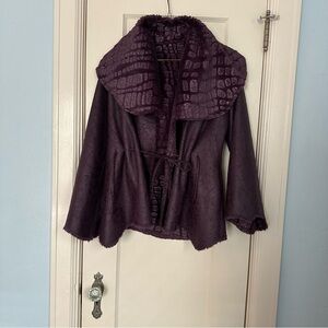 Chi by Falchi Poncho Cape Coat Purple Animal Print Fairy Bell Sleeves Size XS