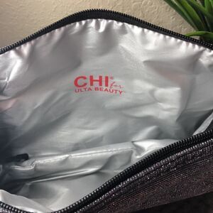 Preowned chi thermal bag Shiny Gently used bad Puff ball (black) Zipper close No rips or tears 11x7.5x2.5 Expandable