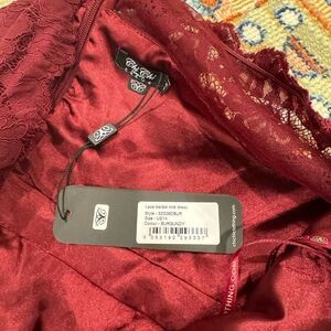 Brand new no tags perfect condition never worn color: Burgundy FLORAL PRINT MIDI DRESS Whether you're looking for a wedding, party or the races, our Marisol dress is simply perfect! Features; bardot neckline, fitted bodice with lace overlay and 3/4 length sleeves, waistband and chiffon pleated midi skirt. Ideal For: Cocktail, Evening, Party & Bridal Occasions Model Height: 5'9" Material : 100% Polyester