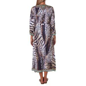 Chia Multi Animal Print Embellished Wrap Kimono Cover Up - One Size Fits All