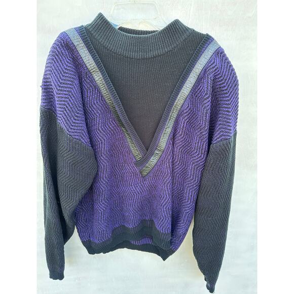 Vintage Chia purple with leather trim pullover sweater size medium.