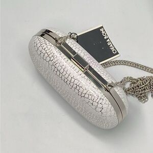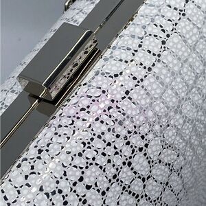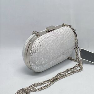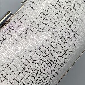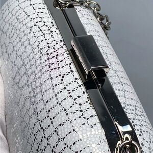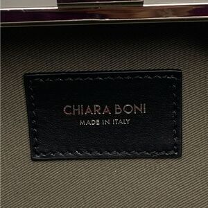 Equipped with a sleek chain strap, Chiara Boni's Alba clutch flaunts an elegant frame silhouette. This piece is crafted of animal-printed metallic leather in Italy.