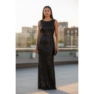 • Style: Sleeveless full-length gown with sequin detailing and open back