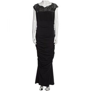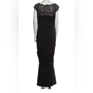 Chiara Boni Black Lace Ruched Evening Gown Size US 4