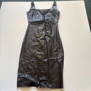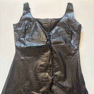 Chiara Boni Crocodile Embosses Faux Leather Midi Cocktail Dress Bodycon Square