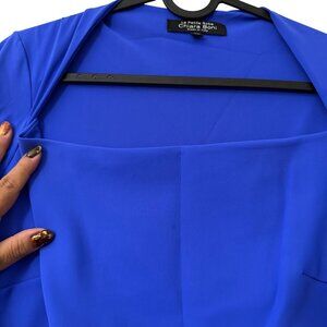 Chiara Boni Italy Royal Blue Square Neck 3/4 Sleeve Sheath Midi Dress Womens 10