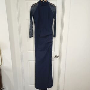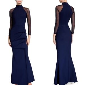 Chiara Boni La Petite Robe Maylys Mock-Neck Long-Sleeve Illusion Gown