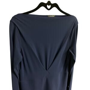 Chiara Boni La Petite Robe Navy Gathered Long Sleeve Sheath Dress 50 / US 14