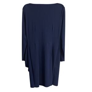 • Features: Pullover styling, Boat neck, Navy, Long sleeve, Gathered / layered detail at bottom on one side, Stretchy elastane blend fabric, Sheath style dress