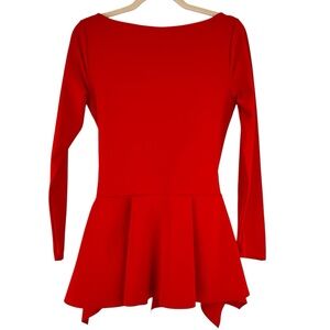 Chiara Boni La Petite Robe Top Red Peplum Handkerchief Hem Gold Circular Belt 6