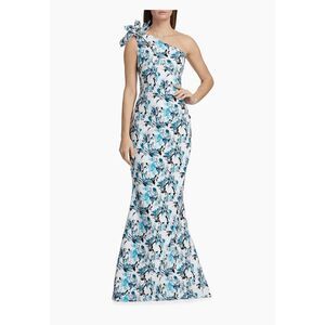 NWT Chiara Boni La Petite Robe Womens Gosia Asymmetric Floral Jersey Gown Blue Size 12