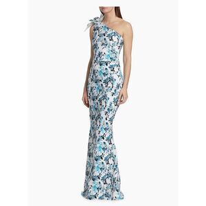 Chiara Boni La Petite Robe Womens Gosia Asymmetric Floral Gown Blue Size 12
