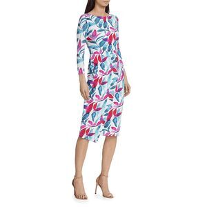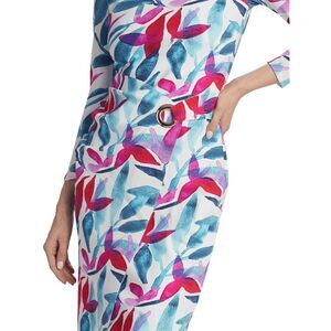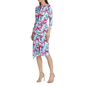 ONLY AT SAKS. Decorated with an exclusive watercolor-inspired floral print, Chiara Boni La Petite Robe's Zelie dress showcases a flattering faux wrap silhouette with a silvertone grommet detail. This charming scuba-stretch piece features ruched detailing at the side.