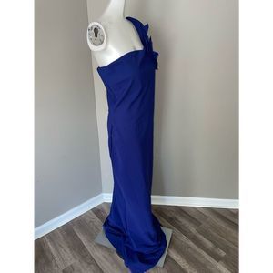 ONLY AT SAKS. The Nicolasa gown is a one-shoulder style with a decorative flower at the shoulder.