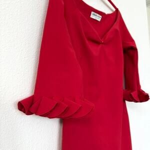Chiara Boni Red Column Gown Ruffle Sleeve Sweetheart Neckline Formal Dress