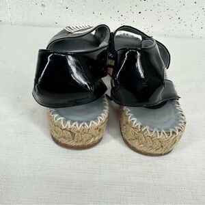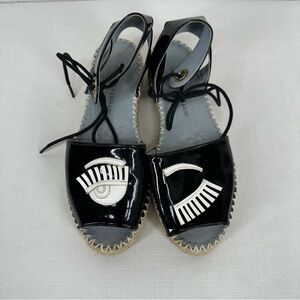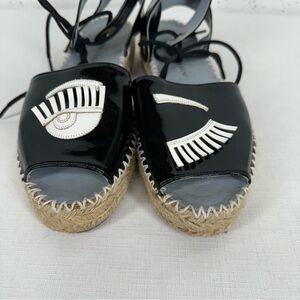 Chiara Ferragni Size 37 Winking Black Patent Leather Platform Espadrilles