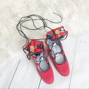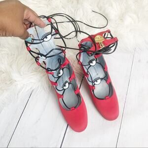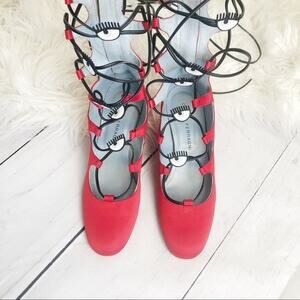 Chiara Ferragni Women's Red Satin Lace Up Hidden Back Zip Heels Size 36