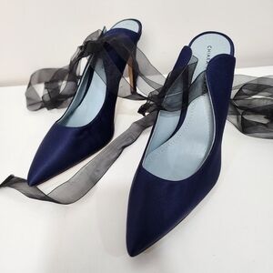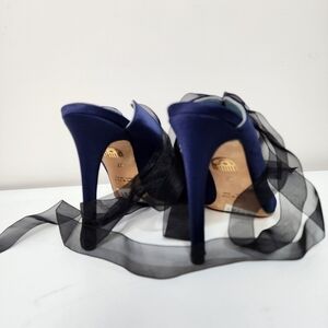 Chiara Ferragni blue satin heels with tulle bow, size 37, nwt