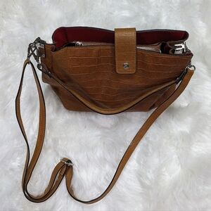Chiara Ferretti Italian Leather Croc Embossed Cognac Brown Convertible Bag