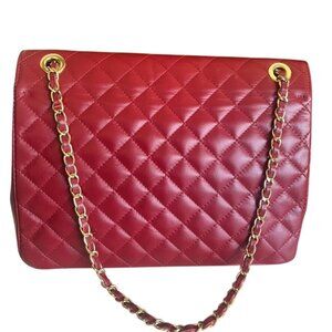 Chiara Ferretti Quilted Red Leather Handbag With Gold Chain Strap Classic Italy