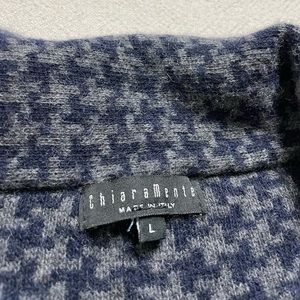 Chiara Mente Wool Blend Navy Grey Houndstooth Open Front Coatigan Sweater L