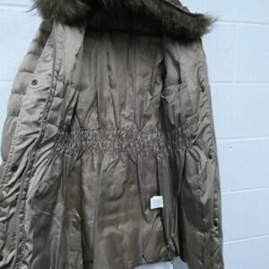 Chiara and Sara women's small tan long puffy jacket removable fur on hood trim