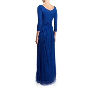 Chiara Boni V-Neck 3/4-Sleeve A-Line Gown with Sheer Skirt Overlay size 8