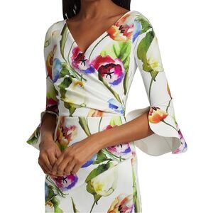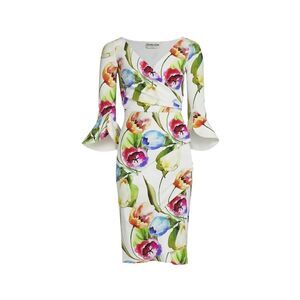 Watercolor floral print dress with a pencil shape and statement sleeves.