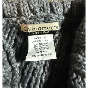 Embrace cozy elegance with this Chiaramente Italian wool blend turtleneck shrug poncho, expertly crafted from a luxurious mix of alpaca, wool, viscose, and acrylic. The soft, warm fabric makes it the perfect piece for staying stylish and comfortable throughout the cooler months. Its timeless gray color pairs effortlessly with almost anything in your wardrobe.